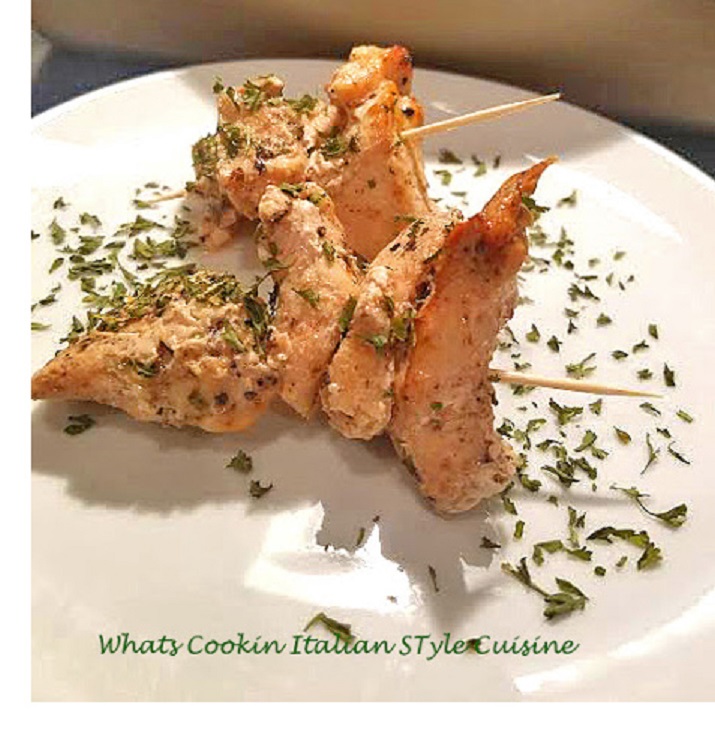 Tender juicy chicken, beef or even use kielbasa, are great finger food skewers for any party!