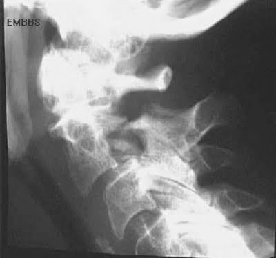 A doctor and an ambulance quickly arrived, and at 12:45 p.m. Patton was admitted to the 130th Station Hospital at Heidelberg, Germany. An x-ray instantly revealed what the doctors suspected; a simple fracture of the third vertebra with a posterior dislocation of the fourth vertebra, also known as the Hangman's Fracture.