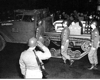The official cause of death was listed as heart failure. On Christmas Eve, 1945, in a pouring rain, General George S. Patton was laid to rest in the U.S. military cemetery at Hamm, Luxembourg. As the casket was lowered a chaplain repeated one Patton's favorite sayings: "Death is as light as a feather."