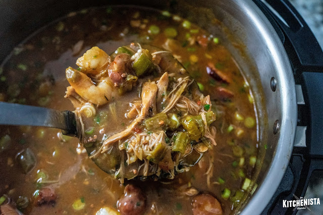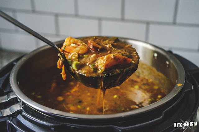 This holiday season, I am committing to finding balance in my kitchen. I'm beyond grateful to be booked and busy, but it's nice to find ways to feed my family some quality comfort food -- even when I don't have all day to spend in the kitchen cooking it! I'm so excited to share this Instant Pot gumbo recipe below and for all of the future recipes that I'll be developing using its new features. In even better news, the Instant Family now includes the Instant Vortex Plus Air Fryer Oven and the Instant Ace Plus Blender. Stay tuned as I give these brand new products a try!