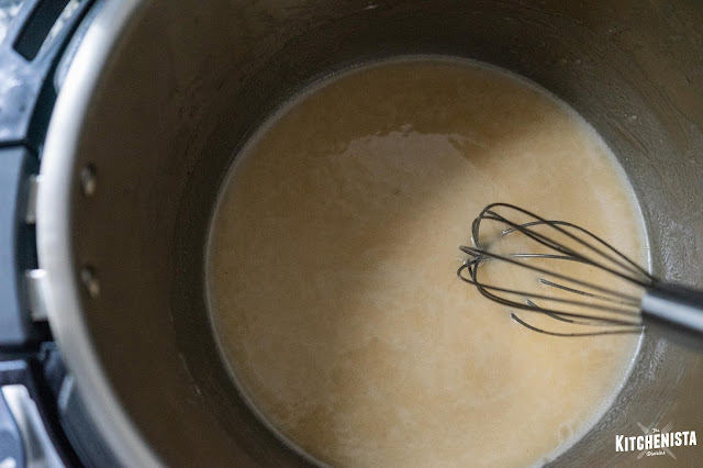 If you feel more comfortable with this step, you can increase the heat to LE 6 or High to cook the roux a little faster. What I did appreciate about the Instant Pot Duo Evo Plus model is that the heat seems to be more consistent and easier to control than in the past.