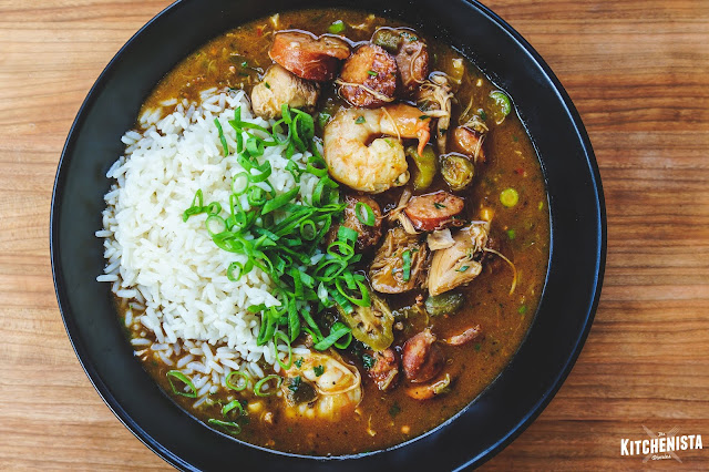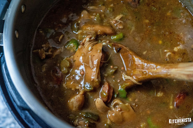 Two years ago around this time in November, I made my first pot of gumboto practice for a catered Friendsgiving event. It was more than a full day's work to coax the characteristic rich, smoky flavors out of a stew that started with flour and oil, turkey, sausage, and okra. I've made plenty of pots of gumbo since then, swapping in whatever ingredients that happen to inspire me at the time, and the laborious process is always worth the end results. But I knew there had to be a faster way to satiate my gumbo cravings on days that just wouldn't allow for hours on end standing at the stovetop. As luck would have it, Instant Pot asked me to partner on a recipe for the holiday season using the new Instant Pot Duo Evo Plus! As I've shared in previous posts, I am a huge fan of Instant Pot multi-cookers, which allow you to cook foods as much as 70% faster than traditional methods. I was definitely excited to get my hands on the latest generation, which also functions as arice cooker, slow cooker, yogurt maker, steamer, cake maker, stock pot, and sous vide machine!