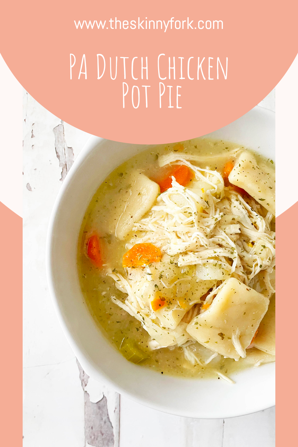 Yield: 8Author: The Skinny Fork (Amanda Plott)Prep time: 10 MinCook time: 25 MinTotal time: 35 MinThe PA Dutch take on chicken pot pie. It's classic and homey and basically chicken and dumplings. Great on cold winter nights when you need something warm for dinner!Ingredients