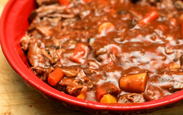 coarsely chopped leftover pot roast with sauce (roughly 4 cups)