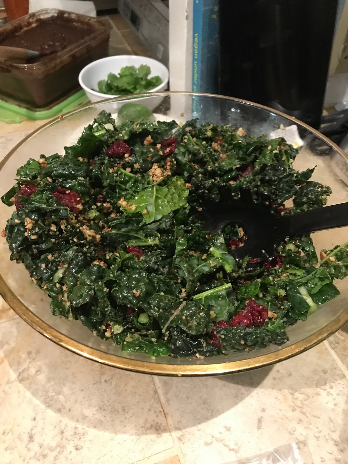 And Nichelle also made the best Kale Salad with Pecan Parm as a side dish. Definitely the best kale salad I've had! She used this recipe from Oh She Glows, and it's literally called The Best Shredded Kale Salad.