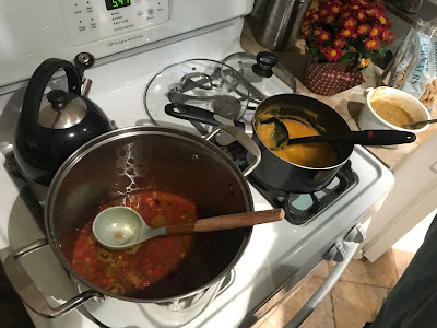 Stephanie made a Black Bean Soup, and I brought Smoky Tomato Soup.